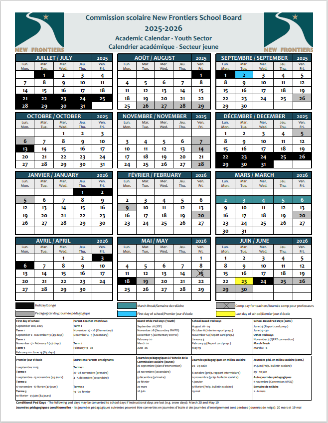 A calendar of events, along with the NFSB calendar (including holidays and PED days), is now available in the Quick Tabs section of our website or at the link below.